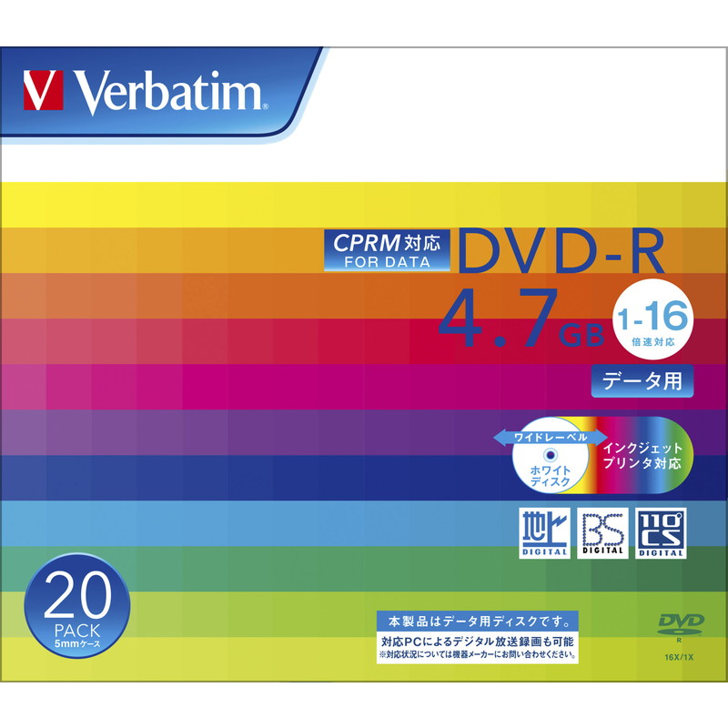 DVD-R(Data with CPRM) 4.7GB 1-16倍速 1枚ケース(透明)20P