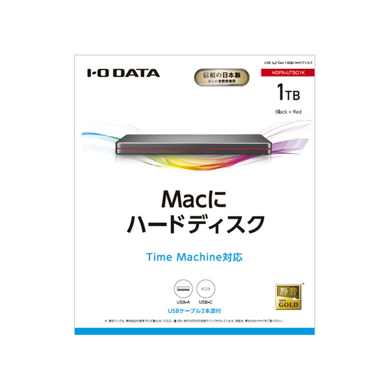 USB 3.2 Gen 1(USB 3.0)対応ポータブルハードディスク「カクうす」 1TB Black×Red