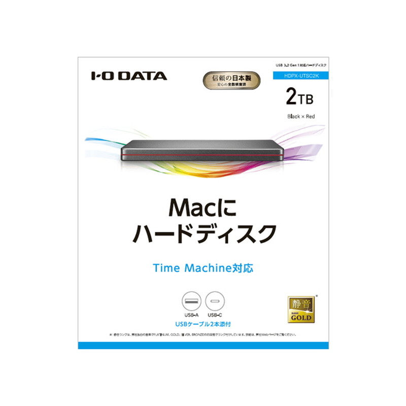 USB 3.2 Gen 1(USB 3.0)対応ポータブルハードディスク「カクうす」 2TB Black×Red