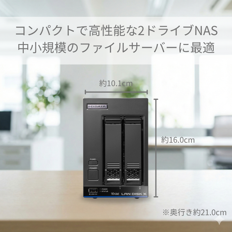 こちらのLAN DISK X(2ドライブモデル)は、LinuxベースのOSを搭載した法人向けNASの中で、非常にコストパフォーマンスに優れたミドルハイモデルです。とにかく機能が豊富で、CPUスペックも高めでありながら、手ごろな価格を実現していますので、「迷ったらとりあえずこれ!」と言っても過言ではありません。