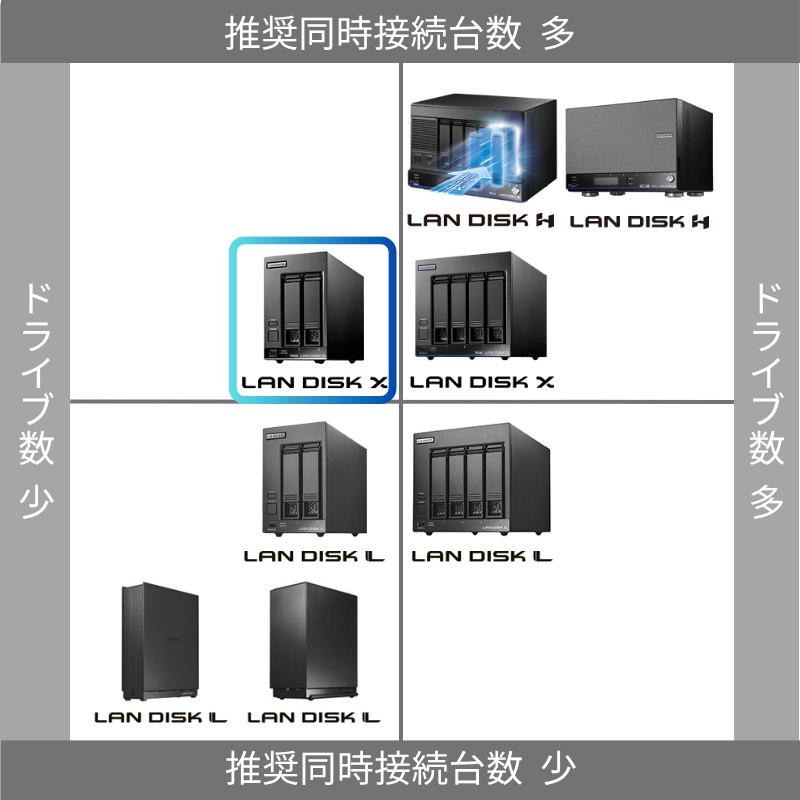 新規導入はもちろん、過去の当社製NAS、HDL-GTシリーズやHDL-XRシリーズ、HDL-XVシリーズ等からの買い替え用としてもオススメできます。