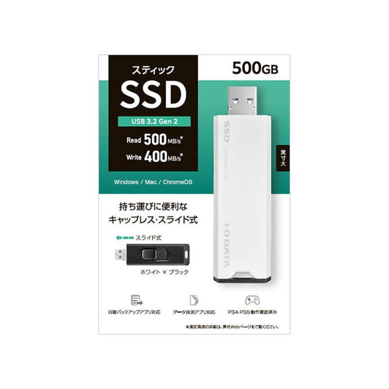 USB 3.2 Gen 2対応 スティックSSD 500GB ホワイト×ブラック