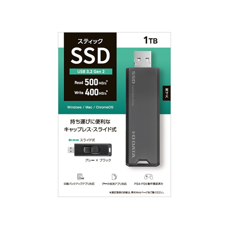 USB 3.2 Gen 2対応 スティックSSD 1TB グレー×ブラック