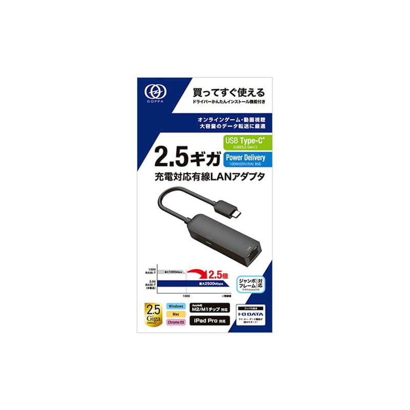 PD100W充電対応 Type-C接続 2.5GbE LANアダプター