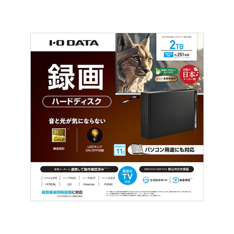 テレビ録画&パソコン両対応 外付けハードディスク 2TB ブラック