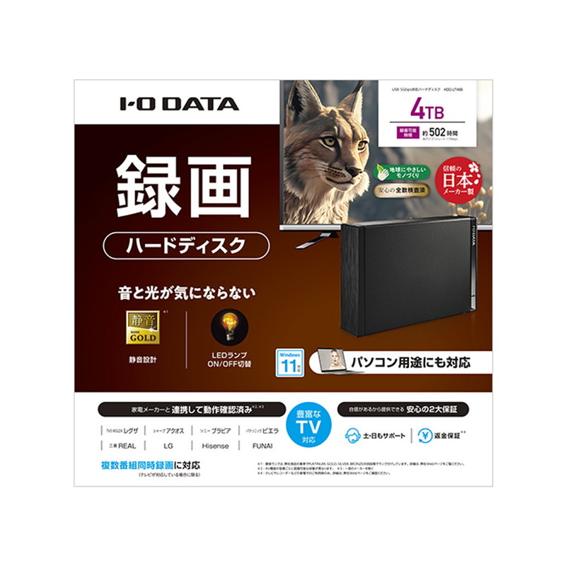 テレビ録画&パソコン両対応 外付けハードディスク 4TB ブラック