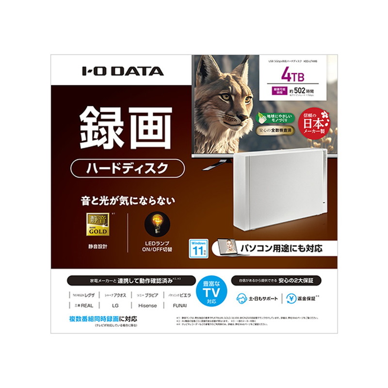 テレビ録画&パソコン両対応 外付けハードディスク 4TB ホワイト
