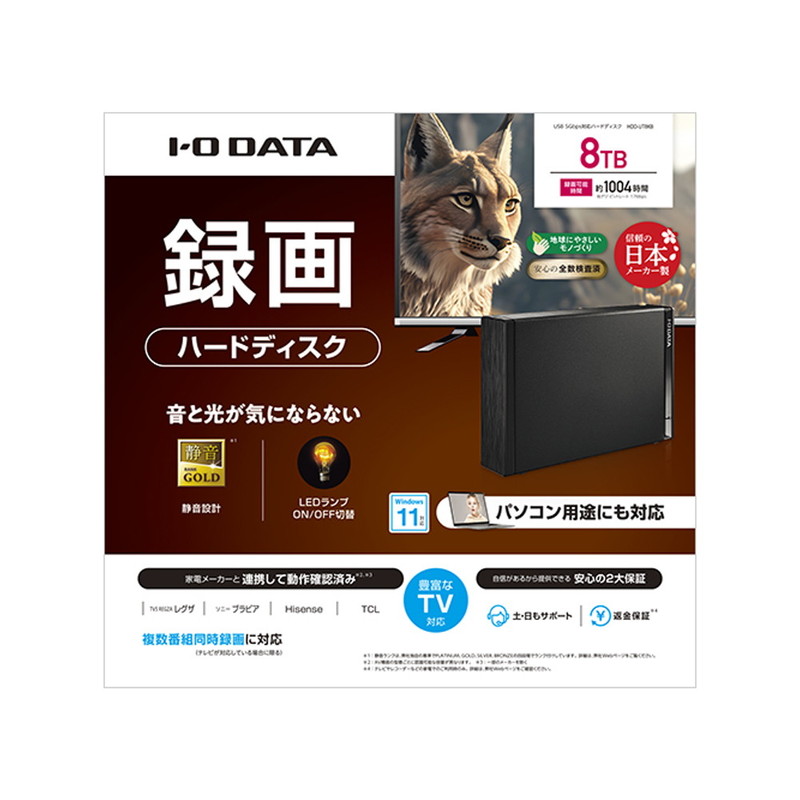 テレビ録画&パソコン両対応 外付けハードディスク 8TB ブラック