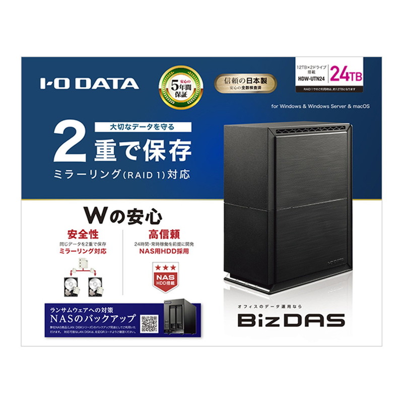 - 容量 24TB(RAID1使用時は実効容量12TB)