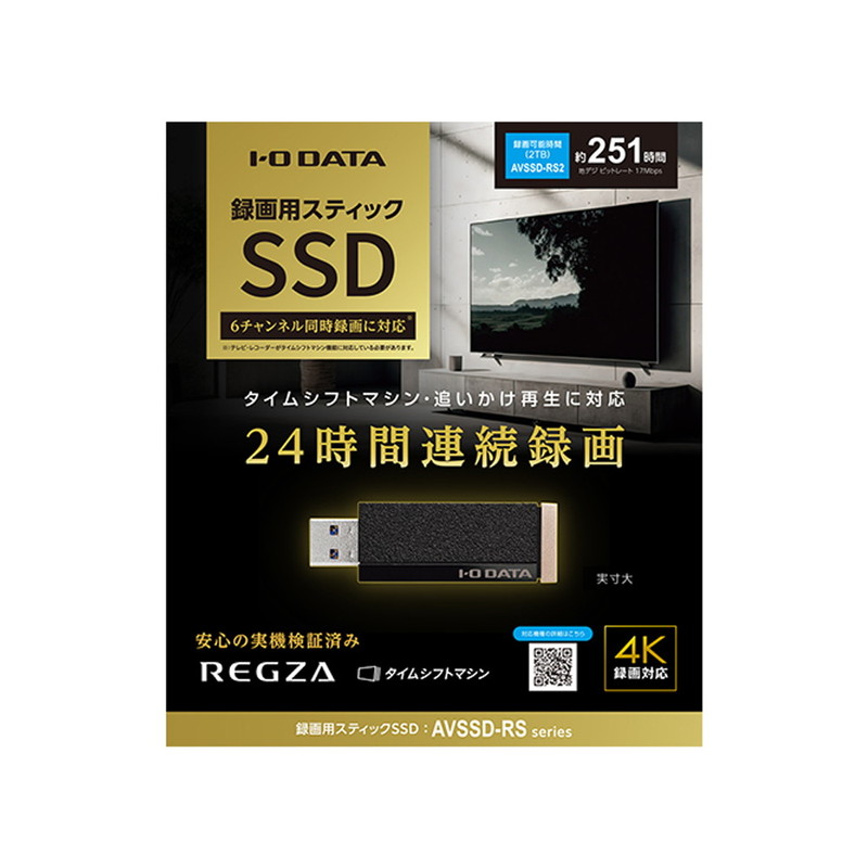 24時間連続録画/4K対応 録画用スティックSSD 2TB