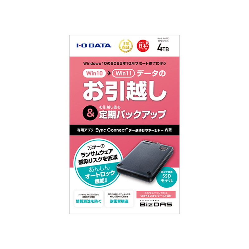 かんたんデータ移行アプリ内蔵 ハードウェア暗号化対応ポータブルSSD 4TB