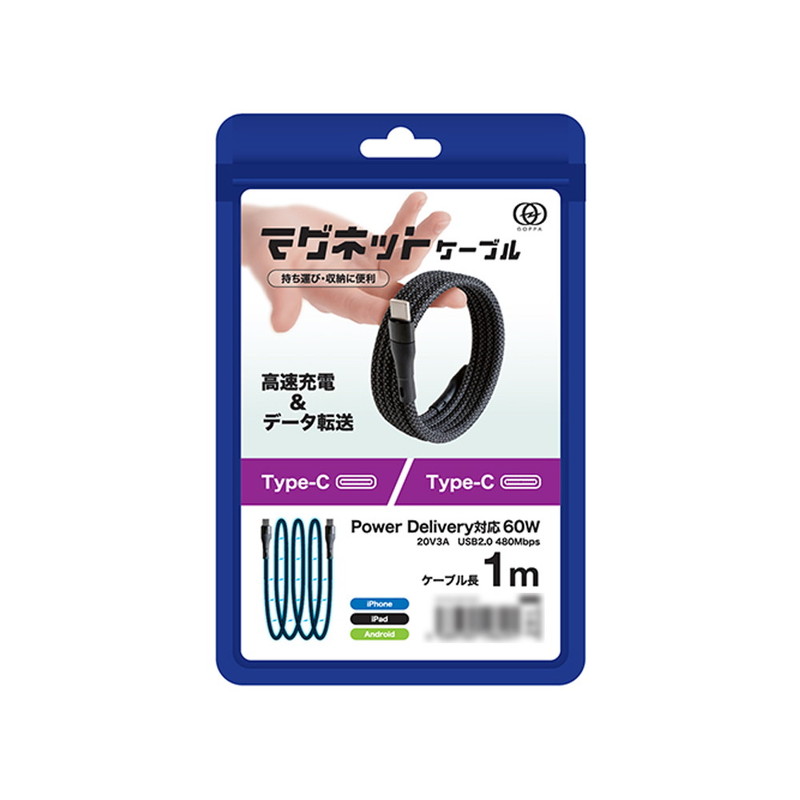 USB-C(R)コネクタ まとまるマグネットケーブル ブラック