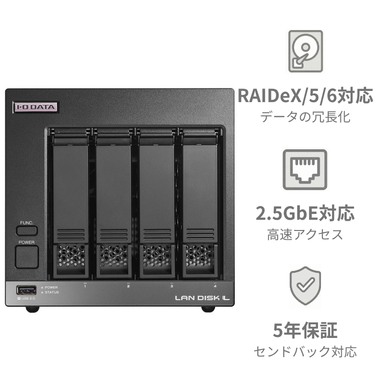 - 容量 8TB(RAID構成によって実効容量が異なります)