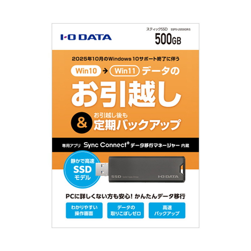 かんたんデータ移行アプリ内蔵 USB 10Gbps(USB 3.2 Gen2)対応 スティックSSD 500GB