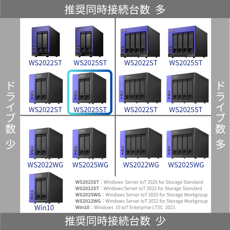 ※2026年1月現在。また本商品に搭載された「Standard」エディションは、OS上のユーザー利用制限数がないため、ハードウェアスペックが許す限り、何台でも同時に接続可能です。