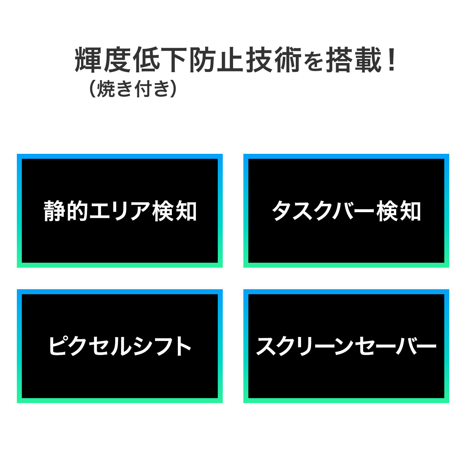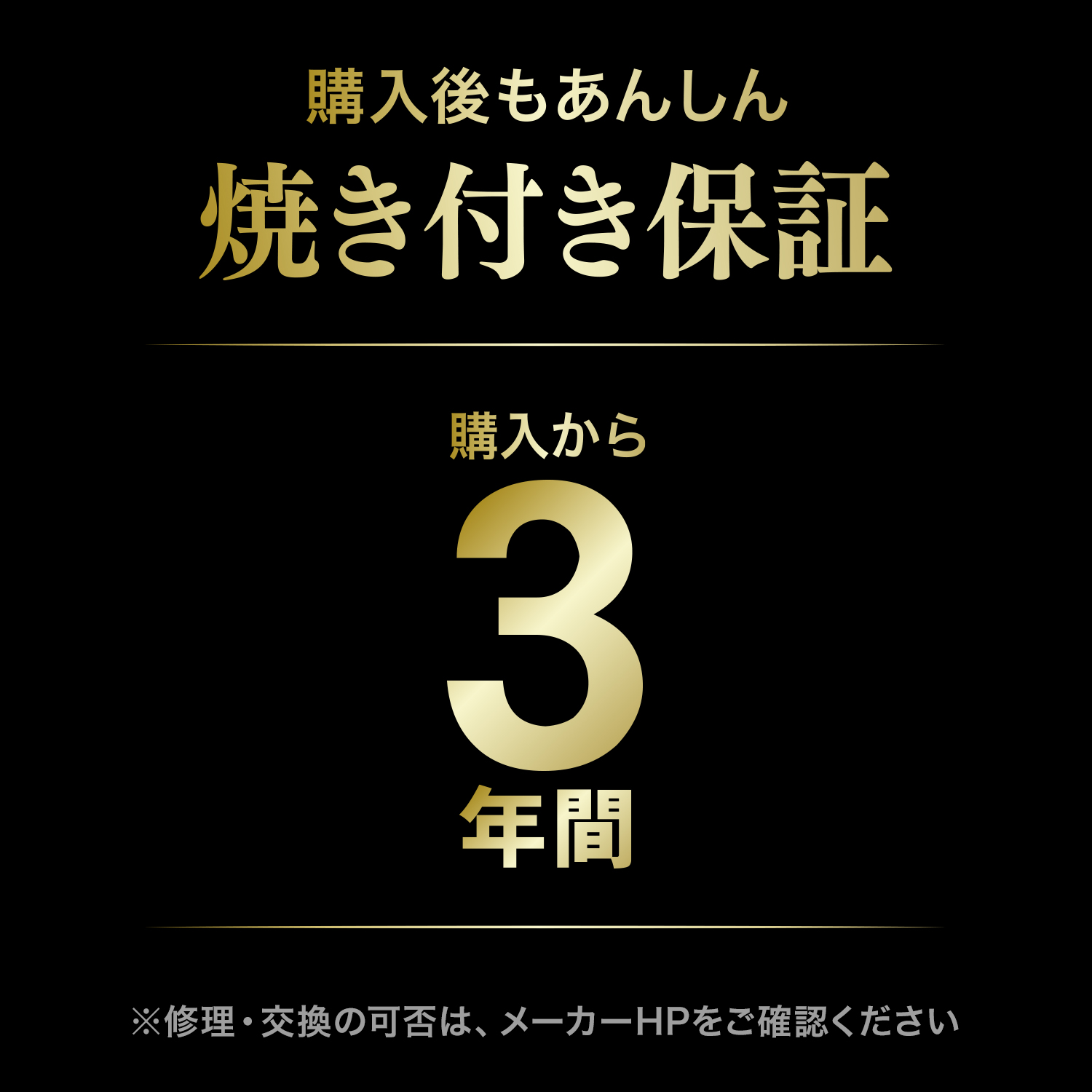 - 保証期間 3年(焼き付き保証を含む)&無輝点保証(購入後、1か月以内に限る)