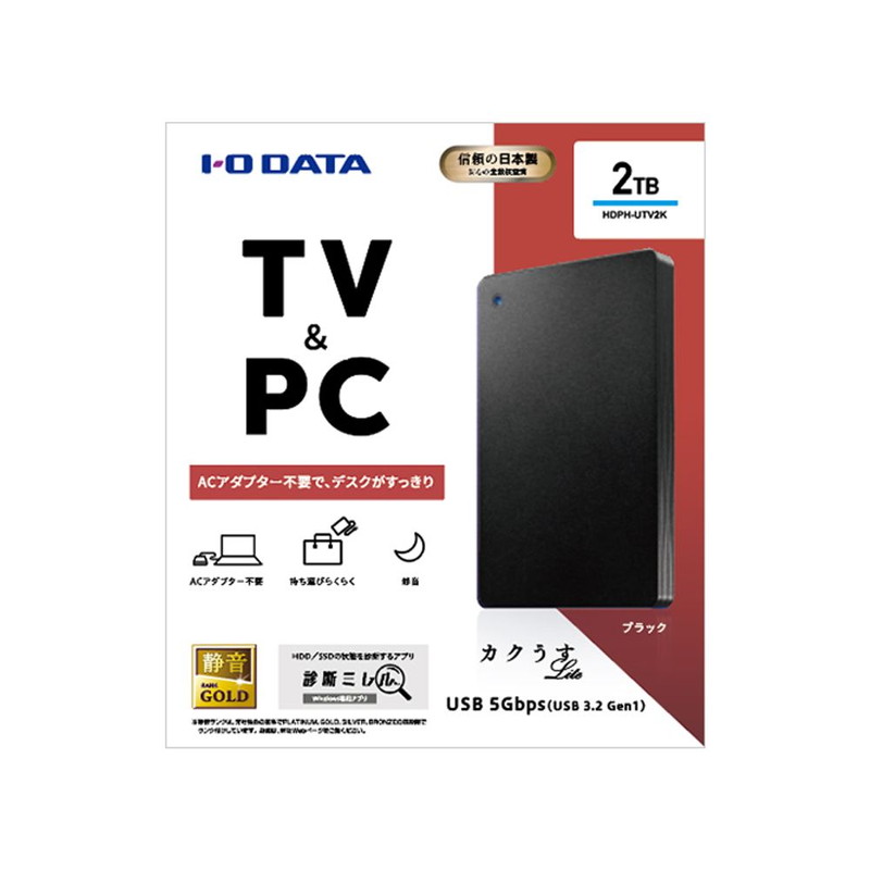 USB 3.2 Gen 1(USB 3.0)対応 ポータブルハードディスク 2TB ブラック