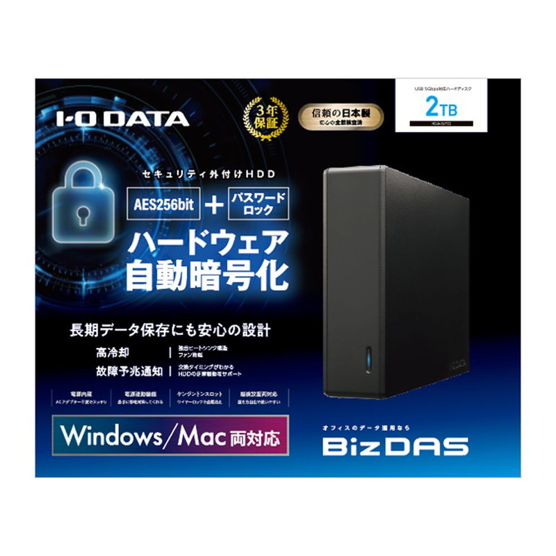 USB 3.2 Gen1対応 セキュリティハードディスク 2TB(パスワードロック/ハードウェア暗号化対応)【Mac OS対応】