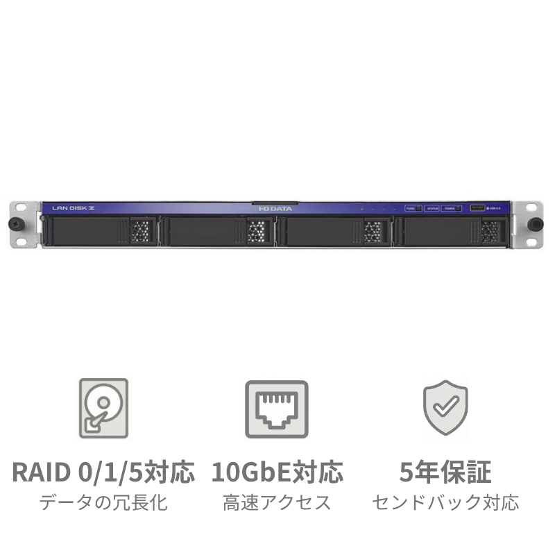 HDL4-Z25SI3B128U/128TB 推奨同時接続台数500台~ 4ドライブラックマウントNAS(32TB×4)