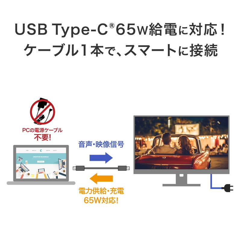 - 映像入力端子 HDMI(HDCP 2.3、ARC/eARC対応)×1、DisplayPort(HDCP 2.3)×1、USB Type-C(HDCP 2.3)×1