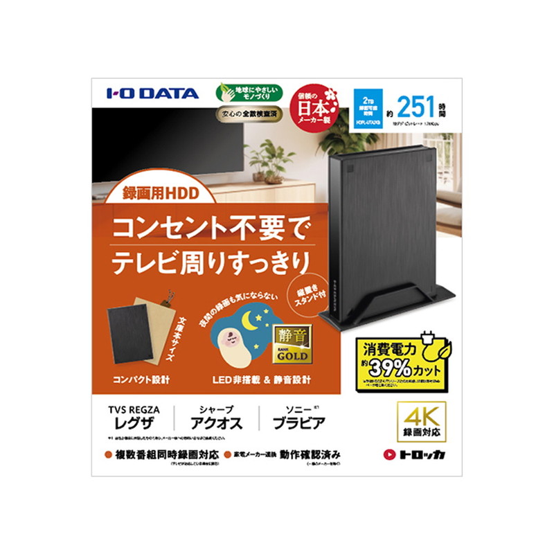 ケーブル1本で使える USBバスパワー対応 録画用ハードディスク 2TB